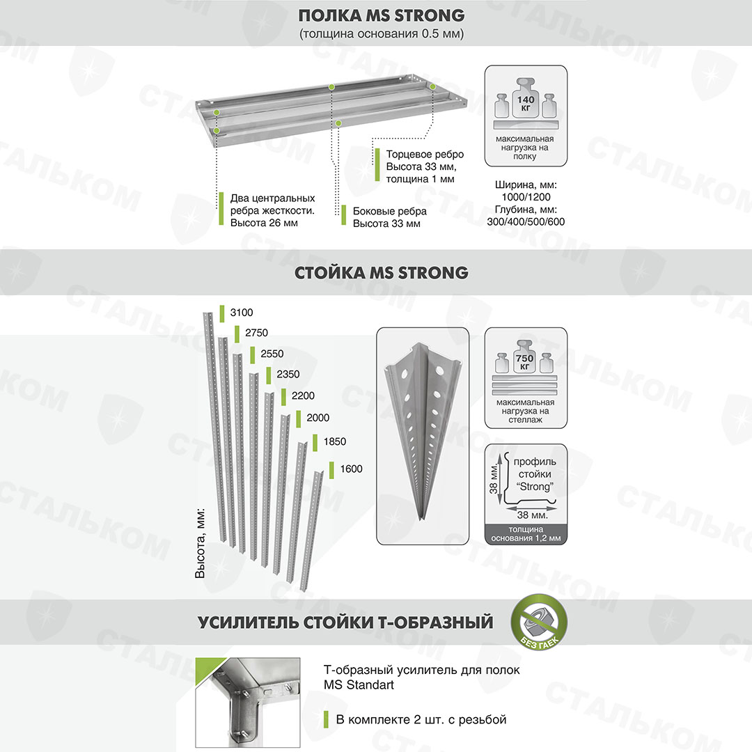 Бесплатная доставка стеллаж MS Strong 2750х1200х400, 6 полок до пункта выдачи оплаченных заказов.